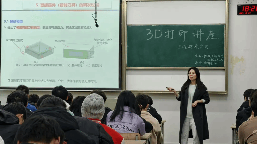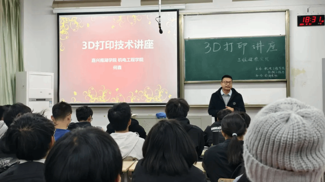 为了加强应用型人才培养,打造特色鲜明、区域一流的新工科学院,2024年12月1日,机械工程系联合嘉兴南湖学院竞赛协会举行《三维建模实践》课程3D打印技术专题课外讲座。讲座由竞赛协会社长陈果同学主持。