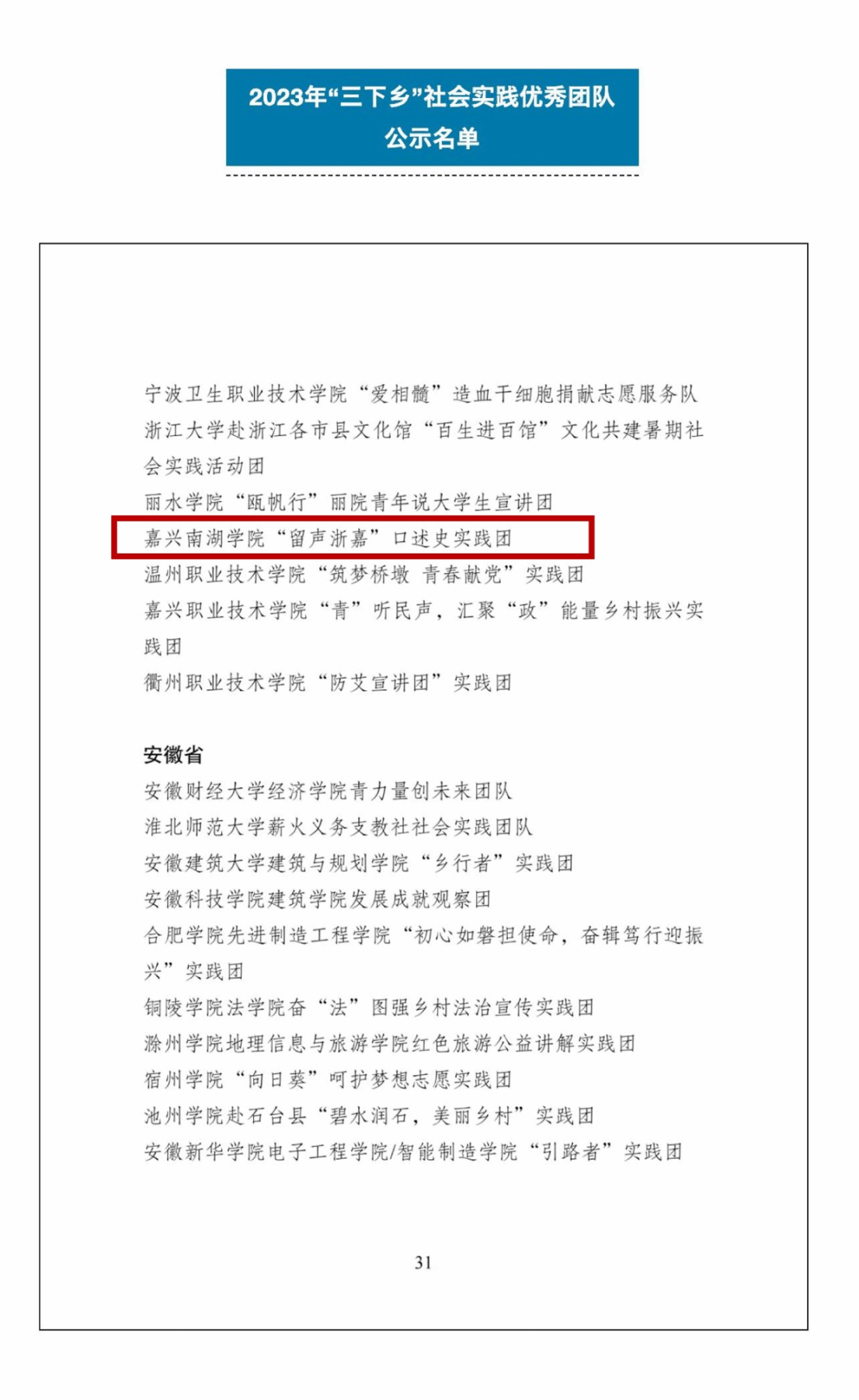 近日,我校“留声浙嘉”口述史实践团荣获2023年全国大中专学生志愿者暑期文化科技卫生“三下乡”社会实践“优秀团队”称号。