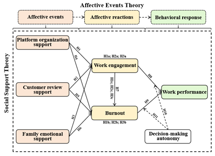 该研究聚焦数字平台零工群体,探讨多维社会支持对其工作绩效的影响机制。基于社会支持与情感事件理论,研究构建了一个链式中介模型,系统分析了平台组织、顾客评价与家庭情感支持对零工工作绩效的影响路径,并创新性地将情感反应与工作自主性引入作为中介与调节变量,揭示了零工绩效形成的深层心理机制。研究为平台管理者优化零工工作环境、提升工作绩效提供了新的理论视角与实践路径。