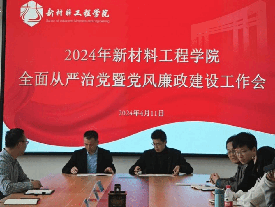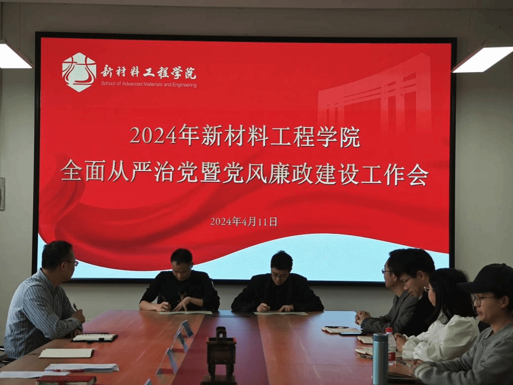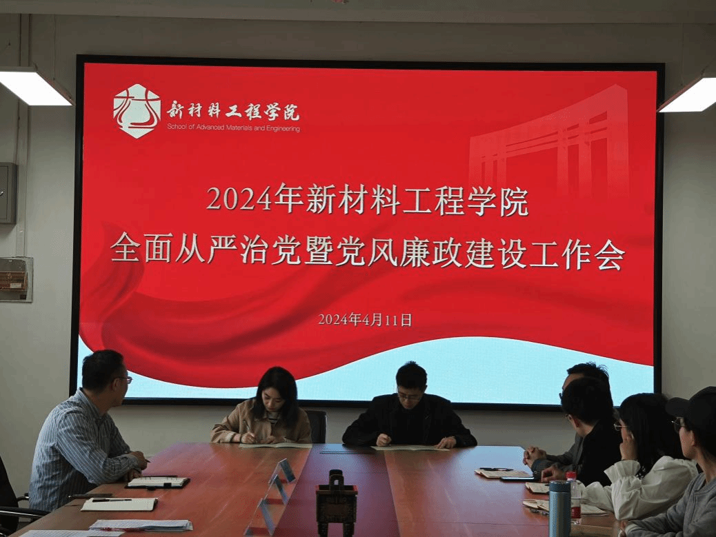 为深入学习贯彻习近平新时代中国特色社会主义思想和党的二十大精神,认真落实二十届中央纪委三次全会和省纪委十五届三次全会和国务院、省政府廉政工作会议决策部署,扎实推进学校全面从严治党工作,营造风清气正的政治生态,4月11日下午,新材料工程学院在319会议室召开全面从严治党暨党风廉政建设工作会议,会议由学院党委书记郝涛主持,学院党委理论学习中心组成员,各支部书记、支委委员,青年教师代表参加。