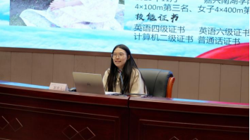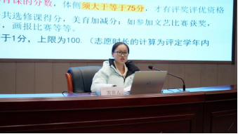 付老师在活动总结中高度评价了几位同学的经验分享,鼓励同学们以前辈为榜样,并向新生提出三点建议:一是要合理看待得与失,及时学会调适心态;二是要掌握好每次锻炼的机会,打好基本功;三是要戒骄戒躁,永葆“天天向上”的初心。