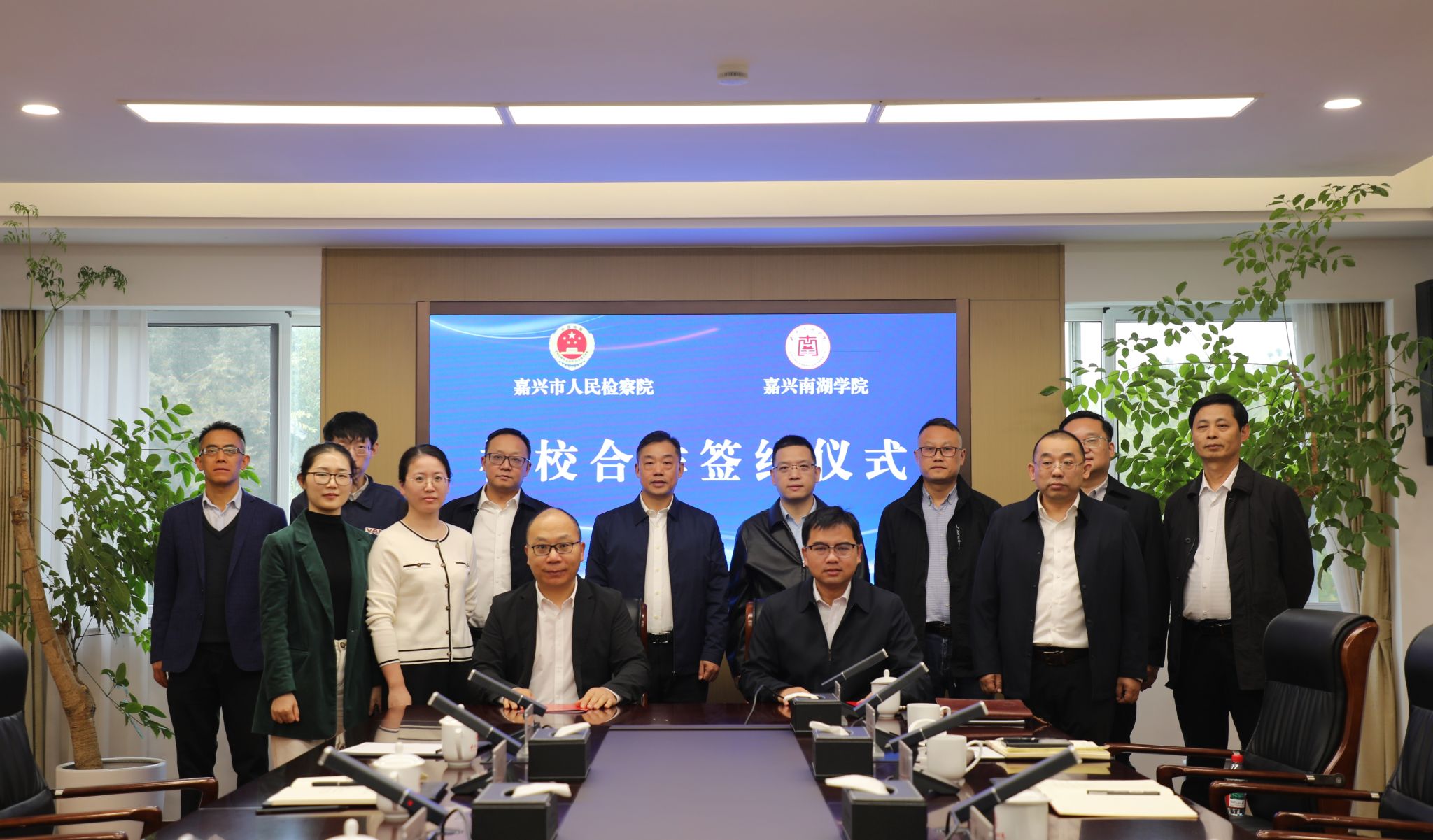 嘉兴市人民检察院办公室、组织人事处、宣教处有关负责人,学校发展规划处、社会合作与国际交流处、人文与艺术学院等相关部门、学院负责人参加签约仪式。