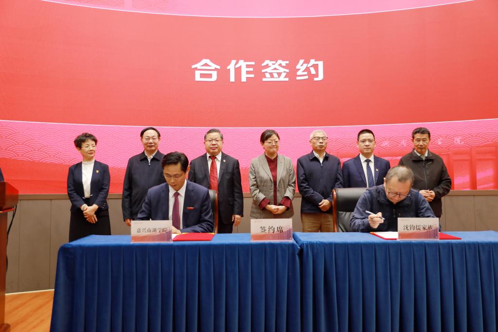 乡贤与家风研究院执行院长赵伯祥分别与永康陈亮研究会执行会长、陈亮第二十九代孙、中国飞神集团董事长陈向阳, 沈钧儒之孙沈宪, 王世德文化研究会会长、永康市象珠镇党委书记陈英男签订合作协议。