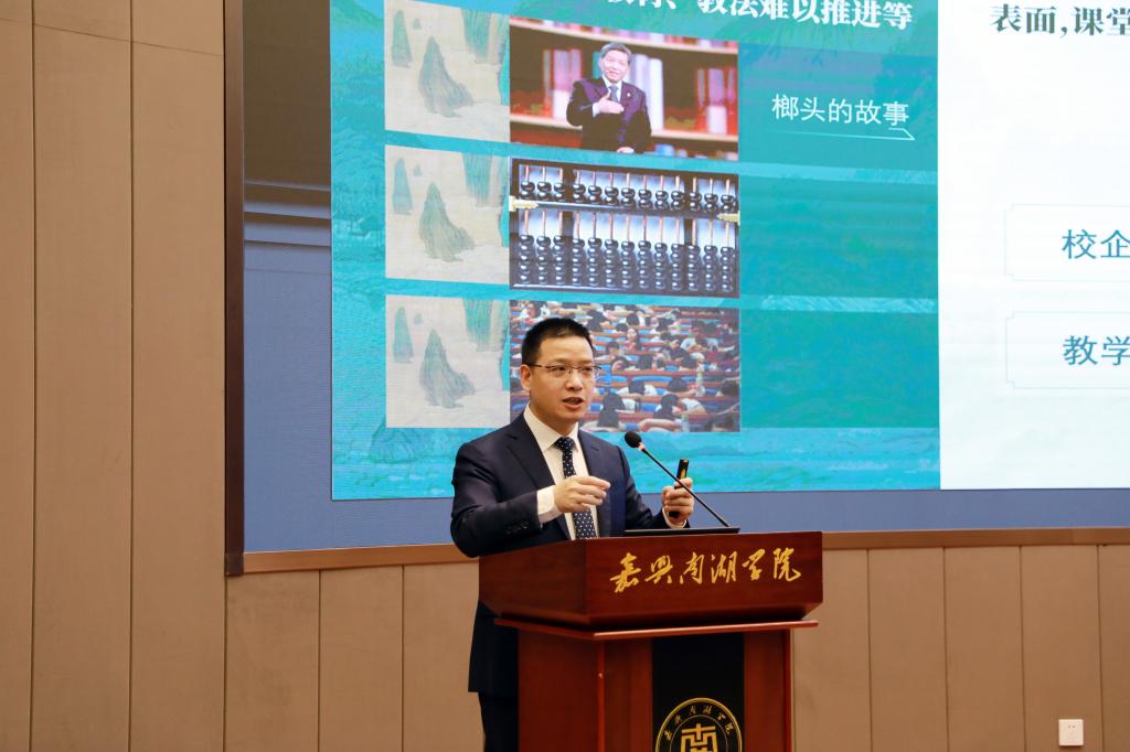 贾文胜以《家风传承观大象 乡贤共举秀明珠——乡贤与家风研究院的建设思路》为题,从学理探讨、问题导向、思路策略三方面阐释了对建设乡贤与家风研究院的思考。他表示,家是最小国,国是千万家。若“百家”兴旺,国家必富强,民族必复兴。从家风切入,与乡贤结缘,做好“百家”,造福“万家”,必成“大家”。而新时代乡贤与家风建设面临着家庭教育严重缺位或错位;对传统家风总结凝练不够,传承不够;对当代乡贤的总结梳理不够,对家风创新提升不够;对如何将红色家风、优秀家风与组织(企业)发展结合,创新组织(企业)文化引领组织建设不够等问题。嘉兴南湖学院乡贤与家风研究院的建设是对中央部署有要求、地方发展有需求、大学改革有诉求的回应,也是以研究院模式推动应用型大学变革的一次实践,旨在通过专家引领、项目载体、团队合作、学生参与、成果导向、育人目标等方式推动学校建设发展。