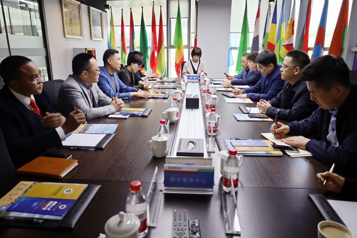 11月8日下午,校长贾文胜、副校长朱蓉一行6人赴浙非服务中心交流,与浙非服务中心主任谢琪、杭州炫琅文化有限公司总经理陈蔚、杭州鑫之烁科技有限公司总经理易建安、浙非服务中心国际联络部负责人Elvis、浙非服务中心企业服务部主任徐霞,以及特邀专家全国电商行指委常务副主任陆春阳就深度合作进行了对接洽谈。