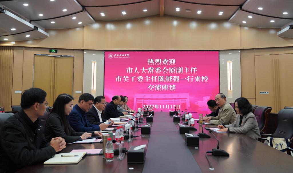 资助仪式结束后,学校与市关工委还举办了交流座谈会。座谈会上,盛付祥向陈越强一行介绍了学校的办学情况、转设以来的重点工作、未来发展思路和规划等方面的情况,双方就嘉兴南湖学院关工委建设相关工作进行了交流探讨。