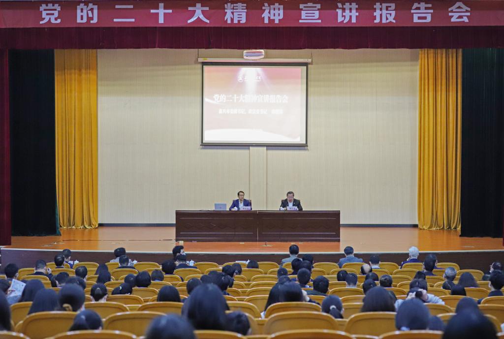 11月22日下午,嘉兴市委副书记、政法委书记帅燮琅来校宣讲党的二十大精神。嘉兴市政协副主席、校党委书记盛付祥主持宣讲会。