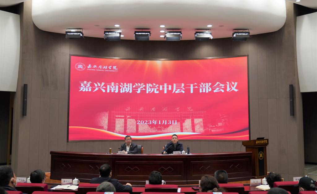 校长贾文胜从以政治建设为引领,强化监管建设,落实从严治党主体责任;以改革创新为动力,强化内部治理效能,推动全体教职工使命愿景趋同;以宣传阵地为支撑,强化意识形态管控,持续提升学校知名度影响力;以立德树人为根本,强化思政课程建设,探索新时代人才培养模式;以人才强校为抓手,强化引育并举,着力推动高素质星空体育平台下载app建设;以扎根地方为导向,强化校地合作,主动服务嘉兴经济社会发展需要;以师生发展为中心,强化服务保障,持续改善整体办学环境;以安全稳定为底线,强化联防联控,全力营造和谐稳定校园八个方面对学校2022年工作作了回顾。他希望在2023年学校蝶变之年,愿景构建进一步完成,愿景趋同进一步实施,资源进一步整合,人才进一步聚集,治理体系进一步完善,校园文化进一步建构,学校“三个大学”建设成效进一步彰显。