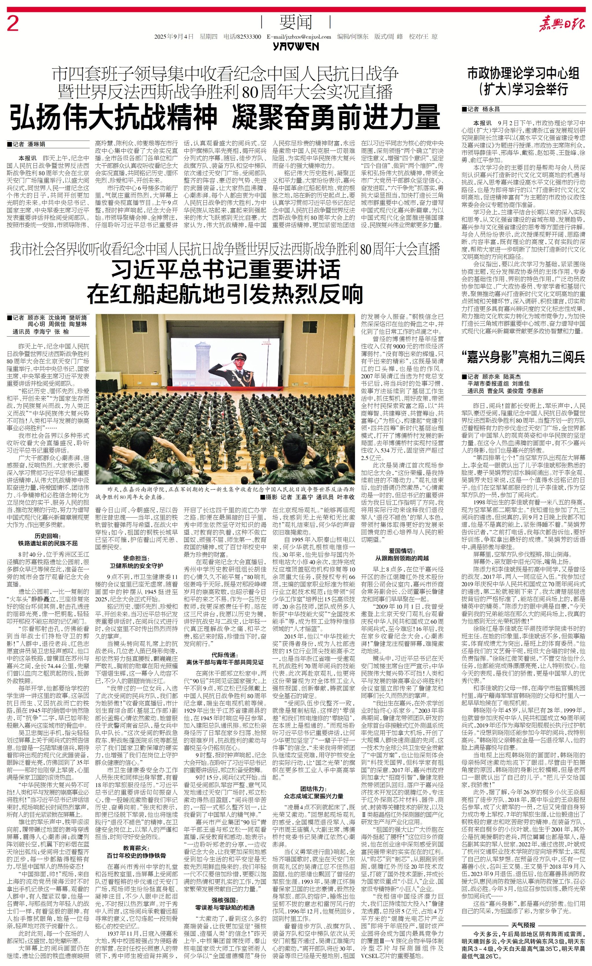 嘉兴日报/南湖晚报:嘉兴南湖学院大一新生观看九三阅兵